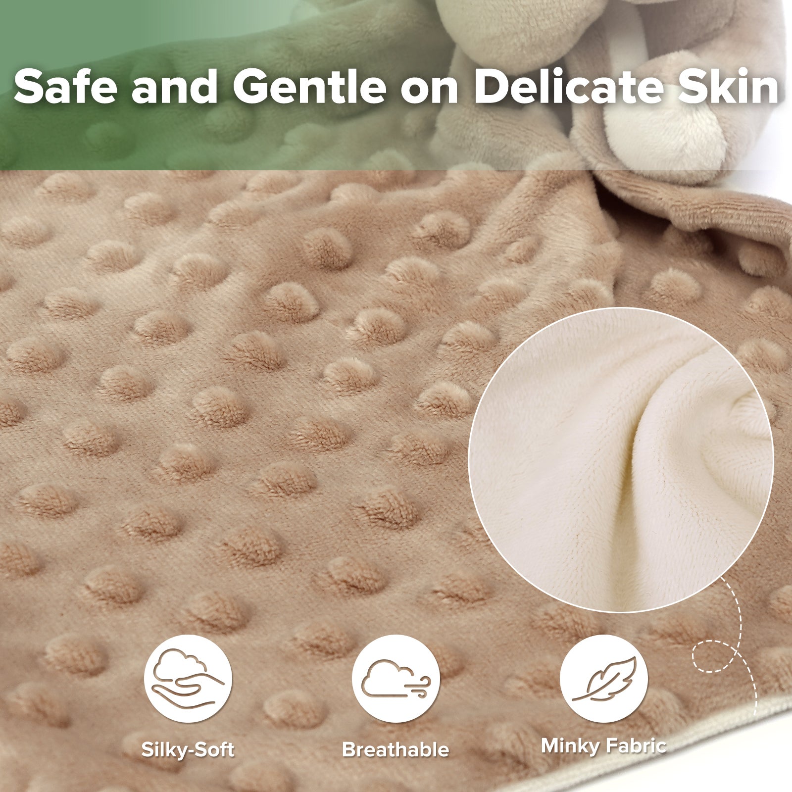 Give your baby comfort, security, and joy from the very beginning with the ultra-soft Animal Binky Blanky. Each adorable Binky Blanky features a cuddly plush friend with a double-sided blanket—textured dots on one side for sensory play and a silky-smooth backing on the other for extra comfort.