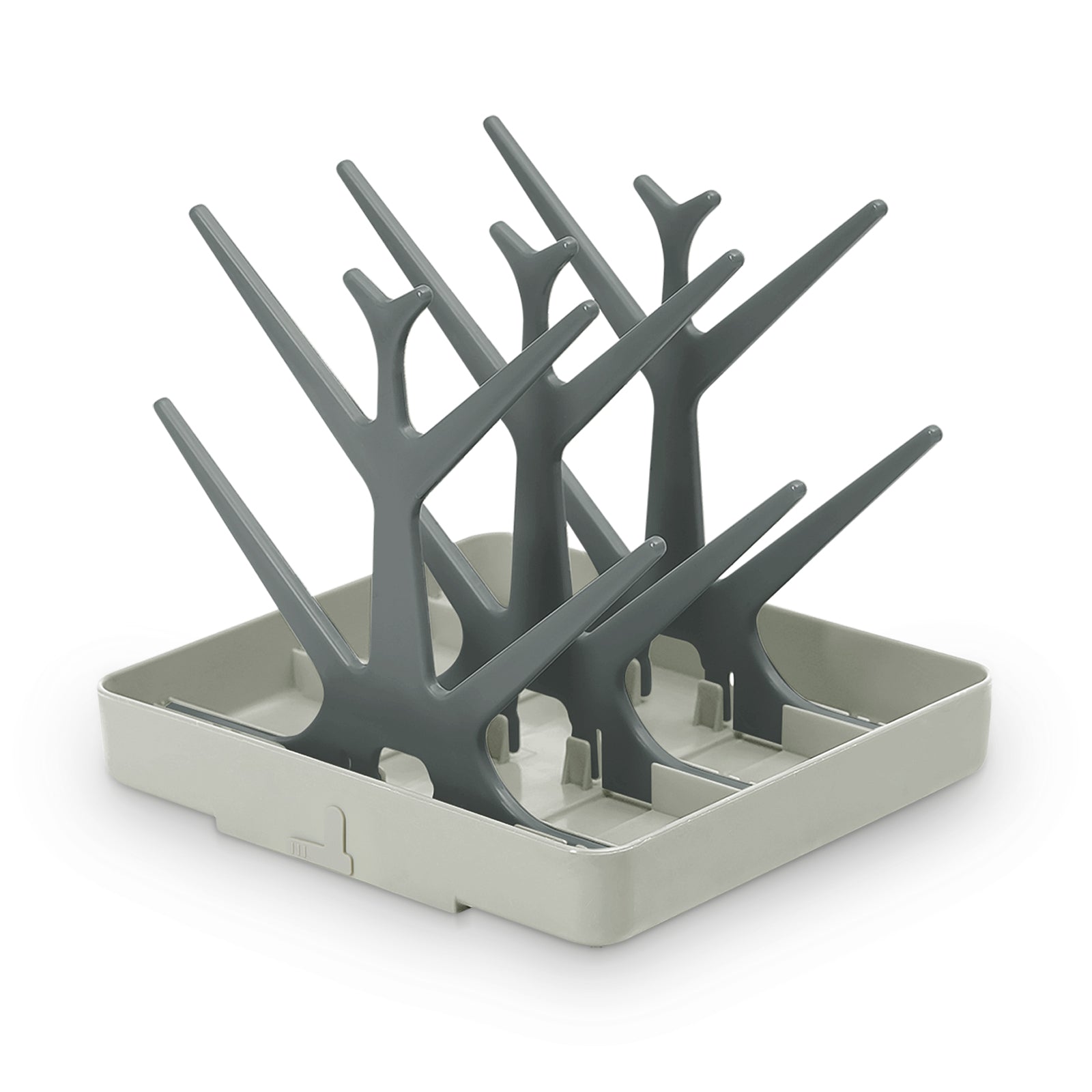 Dry your baby gear or everyday items with the Easy-store Drying Tree and Tray Set! Simply slot each of the three trees into the sturdy base, wash your bottles, dummies, pumps or any other everyday items, and hang them on the tree to air dry. The plug allows water to drain away with ease while the trees nestle into the base after use, making storage easier than ever.