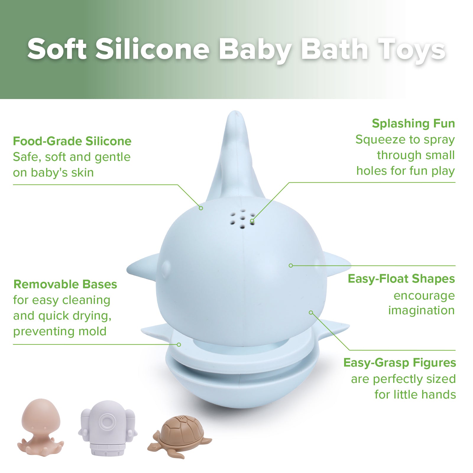 Turn every bath into an underwater adventure with the Ocean Explorer Silicone Bath Toy Set. This set includes four ocean friends—octopus, whale, sea turtle, and submarine—made from soft, food-grade silicone that’s safe for little hands. Designed to float, squeeze, and spray, each toy adds interactive fun while encouraging fine motor skills and imaginative play.