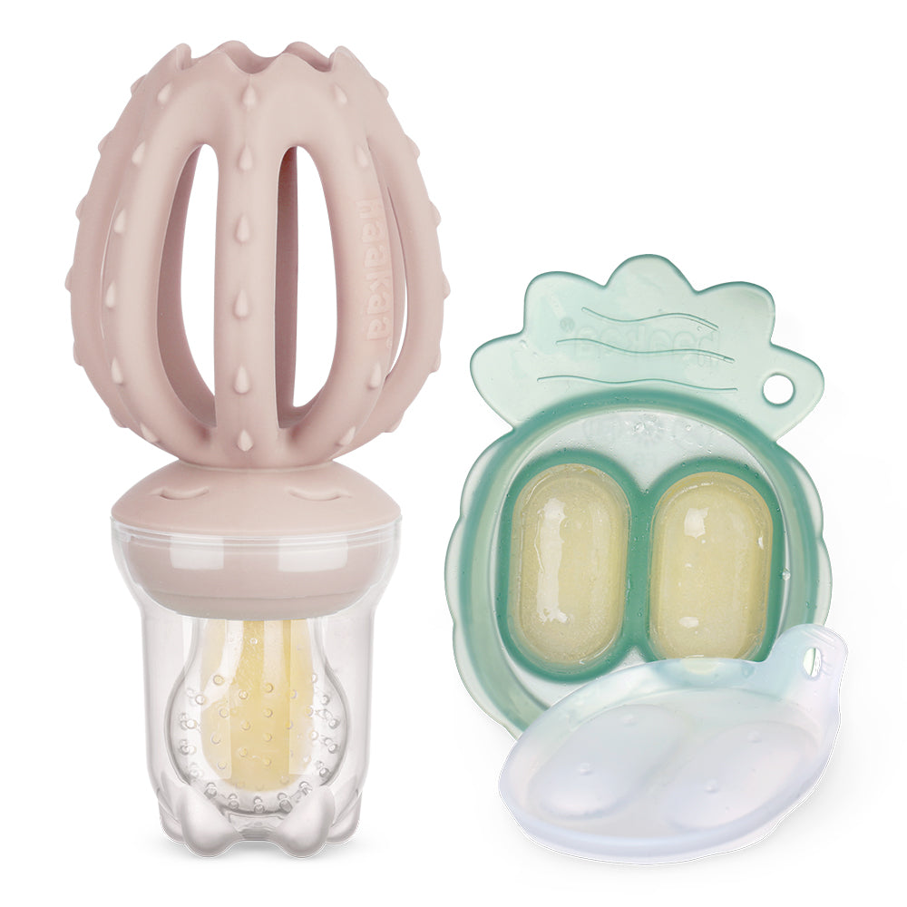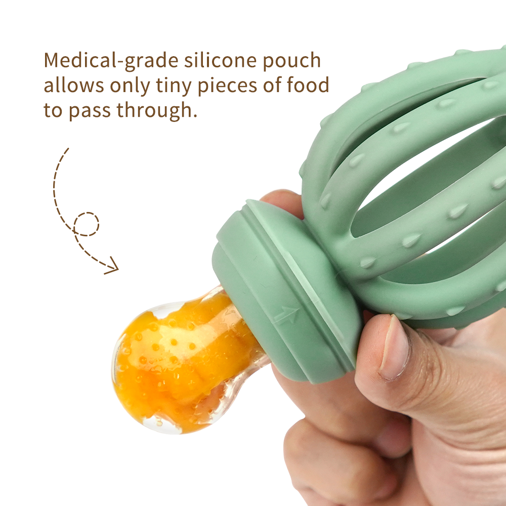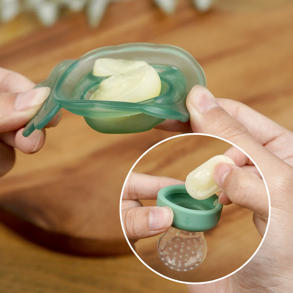 The Octopus Freeze-N-Feed Mini Combo is the perfect way to safely introduce new flavours to your baby while providing cooling relief for teething gums! Combining the fun octopus version of our Fresh Food Feeder with the mini Pineapple Nibble Tray, this combo lets you freeze perfectly sized portions of food for your child to explore. As with all our Fresh Food Feeders, they can discover new flavours and textures without the risk of choking. The adorable octopus shape is not only entertaining for little fingers, but it also gives you two ways to stand the Feeder, keeping things clean no matter what! To use, simply fill the Nibble Tray compartments with breastmilk, pur¹Èed food, or other favourites and freeze. Pop one out when required and place in the Feeder pouch, assemble, and seal tight.